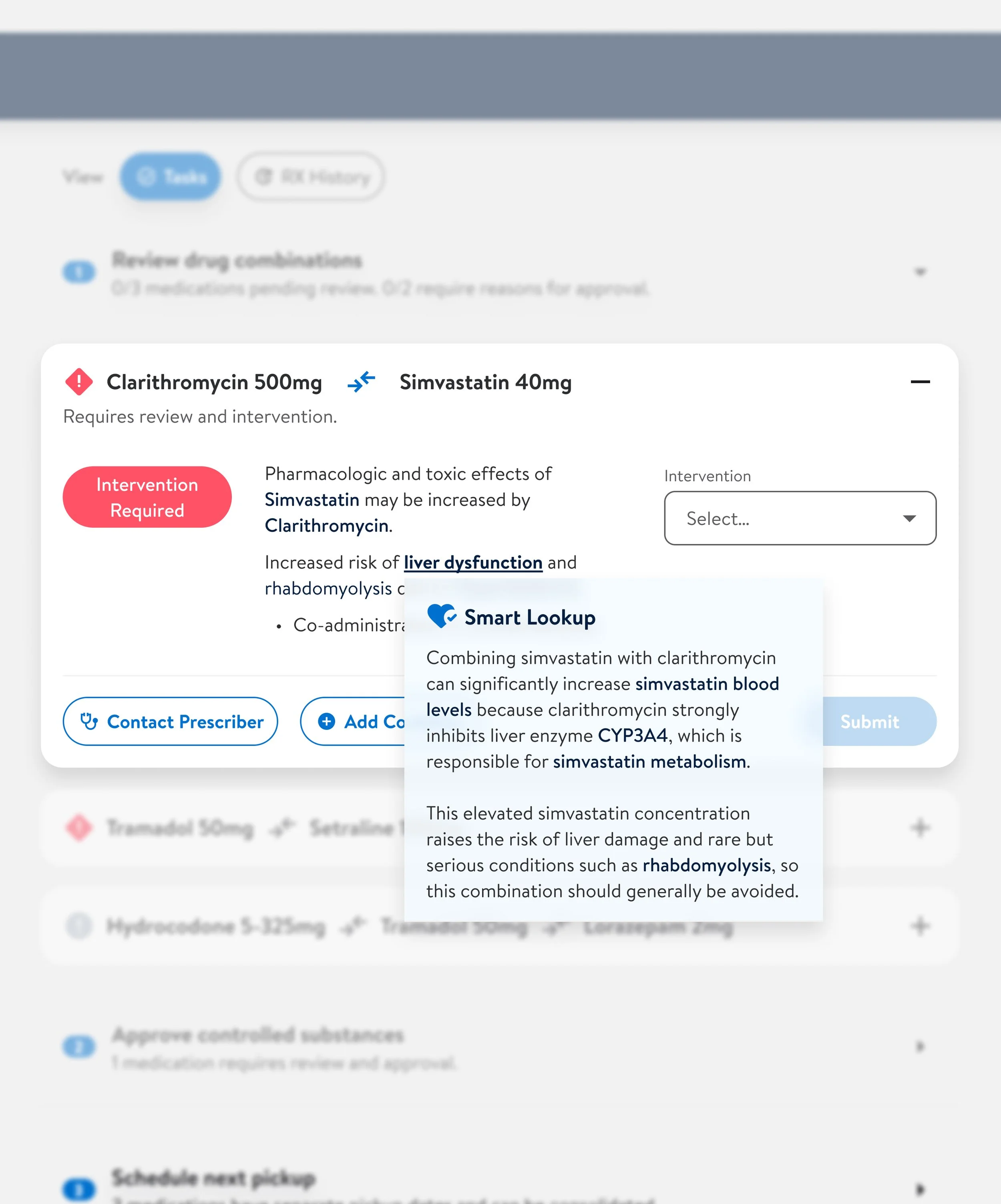 AI-powered context with links to medical documentation. Keep patients safer, and pharmacists up to date.