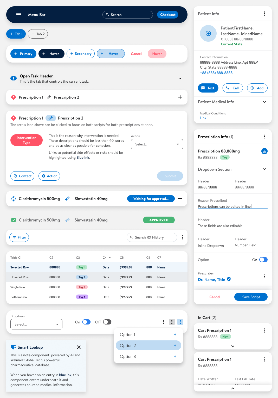 Working with Walmart Global Tech, we also created a modular, accessible design system for internal tools. This ensured the new platform was consistent, fast, and easy for pharmacists to use.