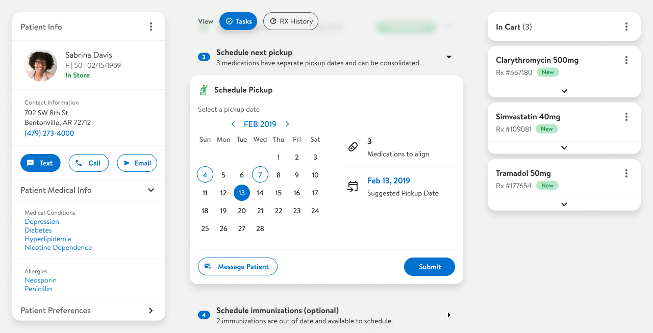 There was no way to schedule all of a patient’s prescriptions for pickup the same day, making the process frustrating and inefficient.
